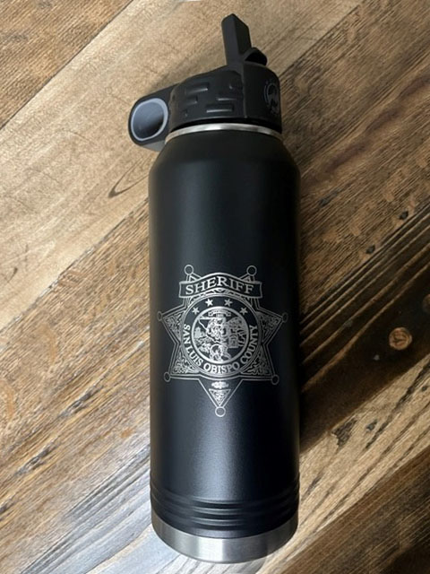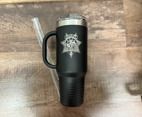 Superior hot & cold retention of the double wall insulated high endurance drinkware and a screw on lid features an easy flip top, soft rubber finger hold, raised ridges for easy opening and closing, and a rigid & removable straw for easy cleaning. Each water bottle will be engraved with the Sheriff's Office logo on one side and you have an option of customizing on the other side.